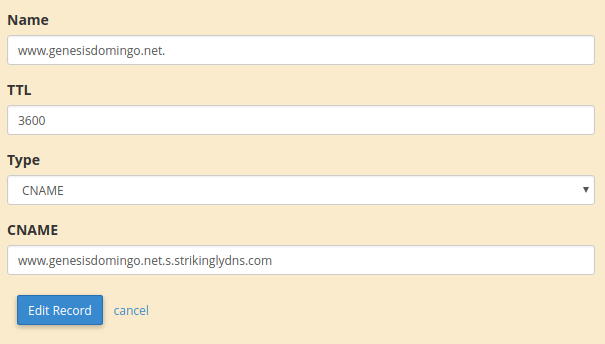 Note: "Name" field shows the whole site URL as it was automatically added by the host/registrars. Some would only require "www".